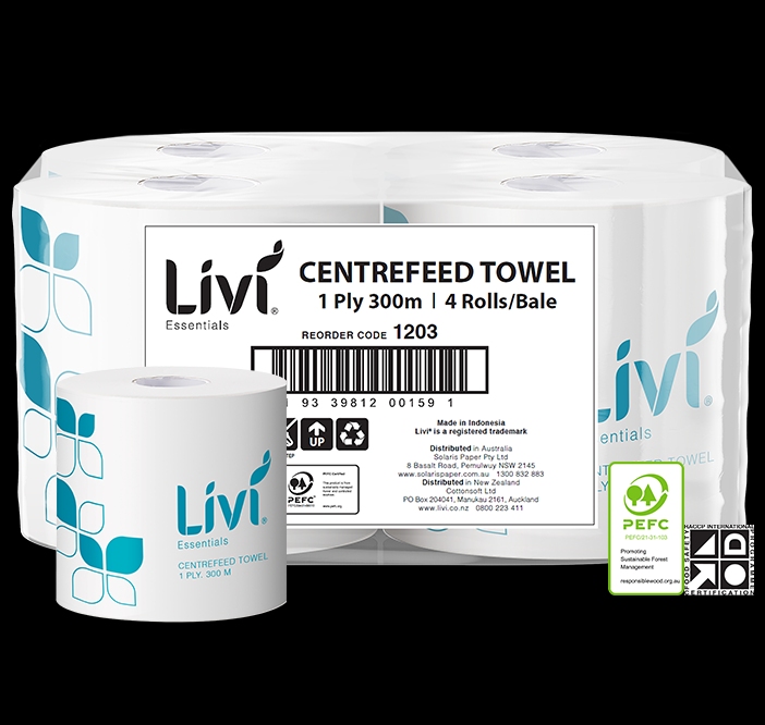 Hand Towel Livi Centrefeed Roll 1 ply 300m 4 per CTN